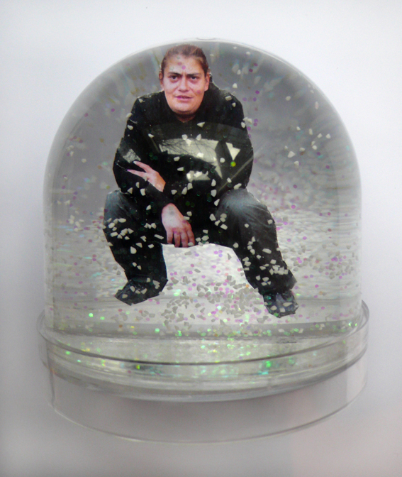 Barbarella Maier, Homeless World 20110, Claudia, Easy Art Papier-Objekt in Schneekugel