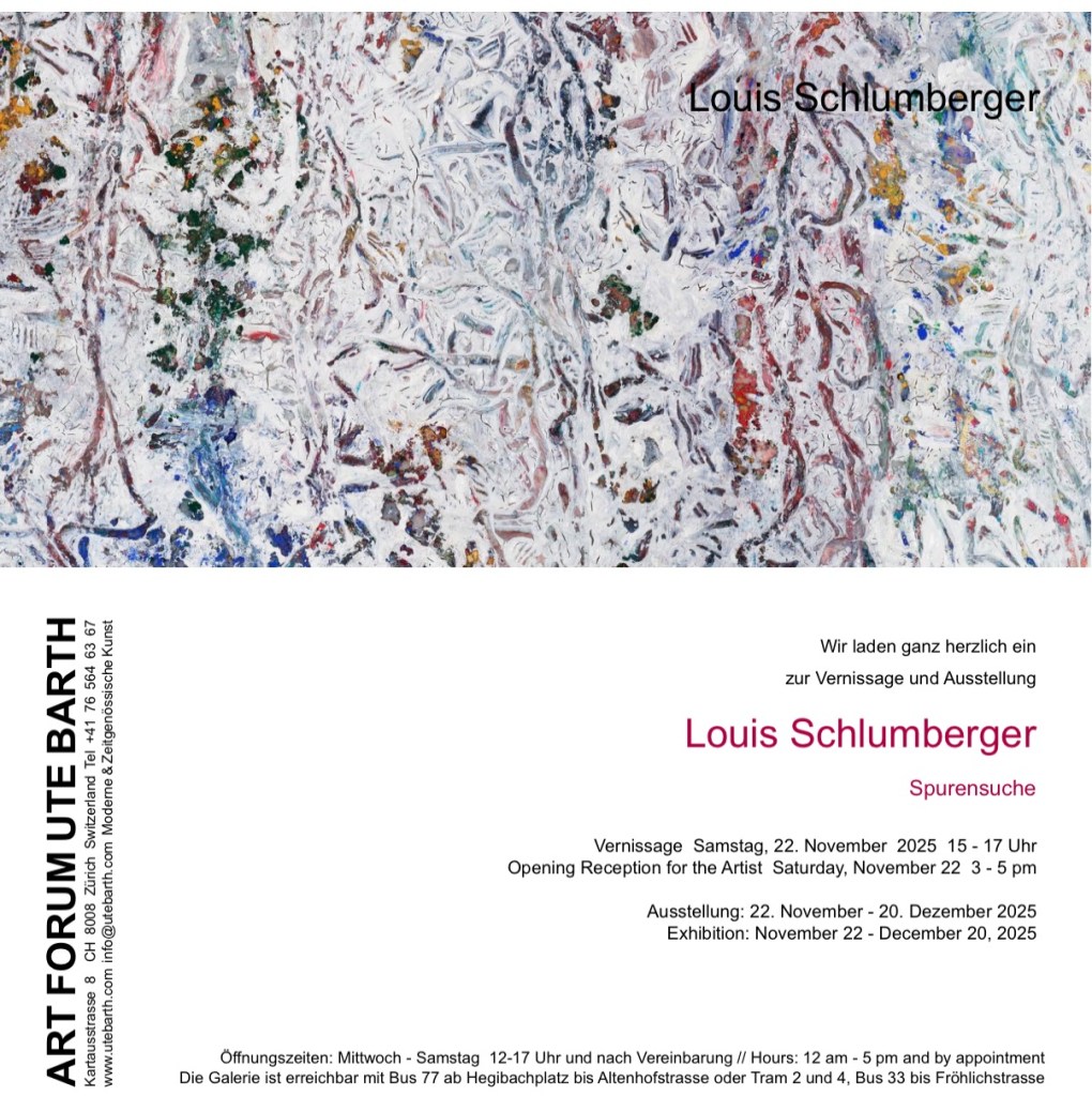 Mit seiner ersten Einzelausstellung in Zürich präsentiert Louis Schlumberger neue Arbeiten in der Galerie ART FORUM UTE BARTH. Seine Malerei erkundet Schichten von Erinnerung und Imagination, in denen Figuren, Landschaften und Spuren des Unsichtbaren auftauchen. Spurensuche öffnet einen Raum zwischen Traum und Realität – poetisch, vielschichtig, unmittelbar.