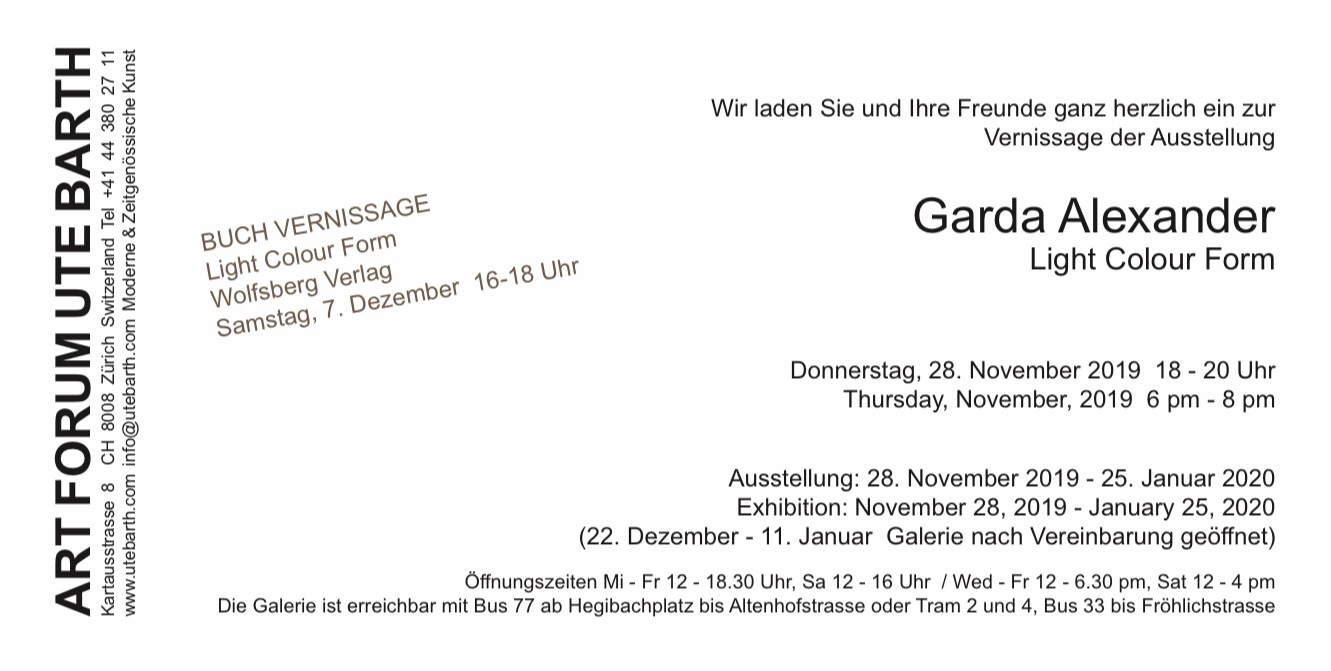 2019/2020 Licht Farbe Form, Galerie Ute Barth,